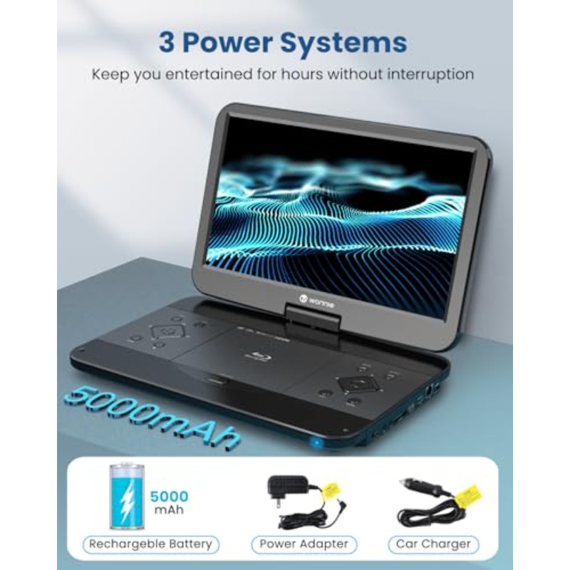 17. 6 Portable Blu Ray Player with 15. 4 1080P Full HD Large Swivel Screen Blu-ray DVD Player with HDTV Out AV in Built-in Rechargeable Battery Support MP4 MKV Video USBu002FSD Card