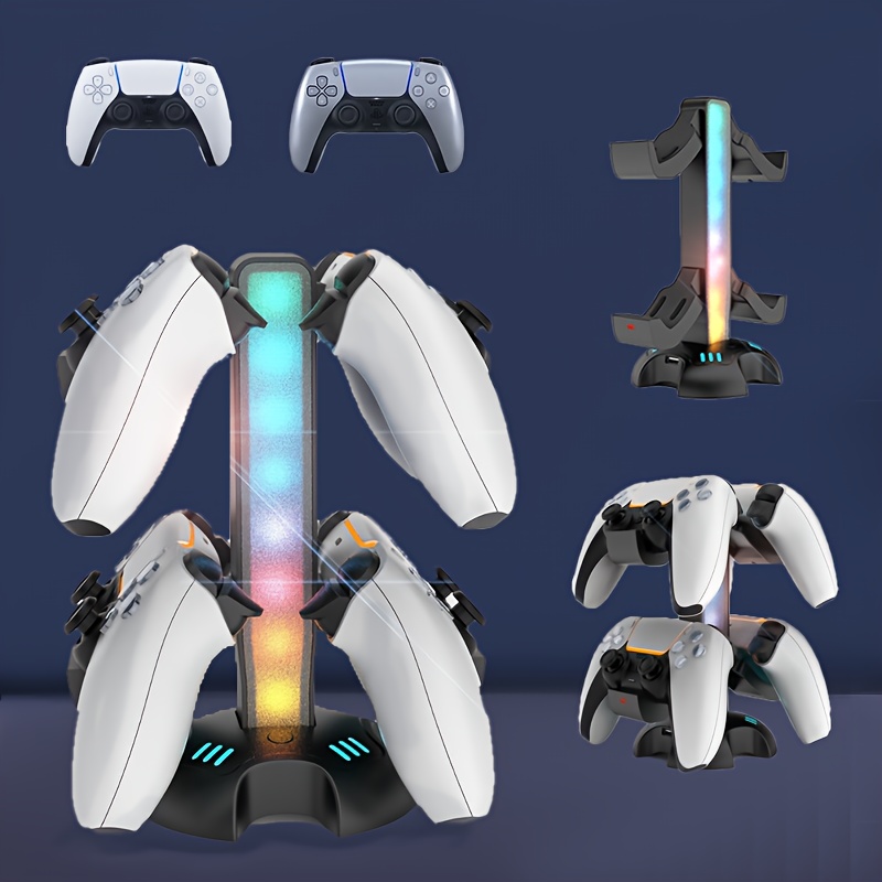 4in 1 Controller Charging Stand Compatible with PS5, RGB Controller Charger with Indicator for PS5, Multi-function Gaming Headphone and VR Storage Stand with USB C Port (Charging Bracket * 2, Hanging Bracket * 2)
